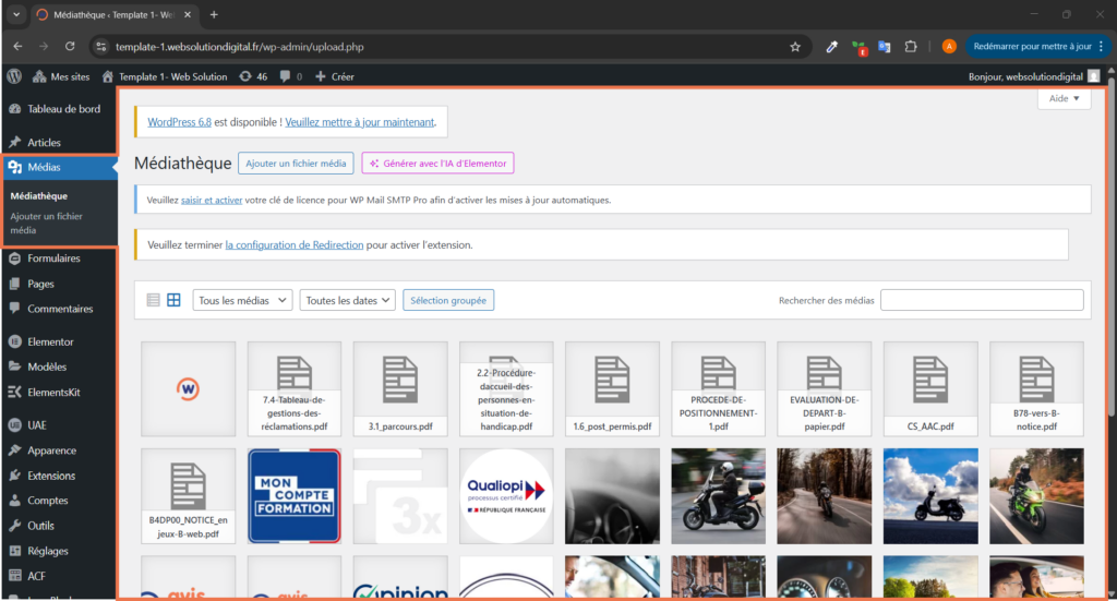 Chaque fichier ajouté crée automatiquement une URL (adresse web) qui permet de l’utiliser dans vos pages ou articles.