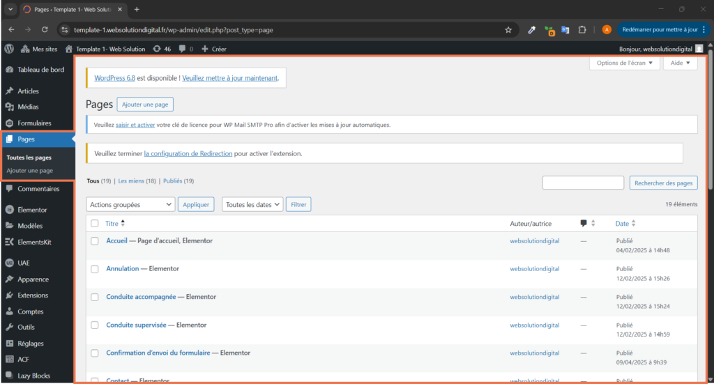 Dans cet onglet, vous trouverez l’ensemble des pages créées sur votre site internet. Vous pourrez :créer une nouvelle page